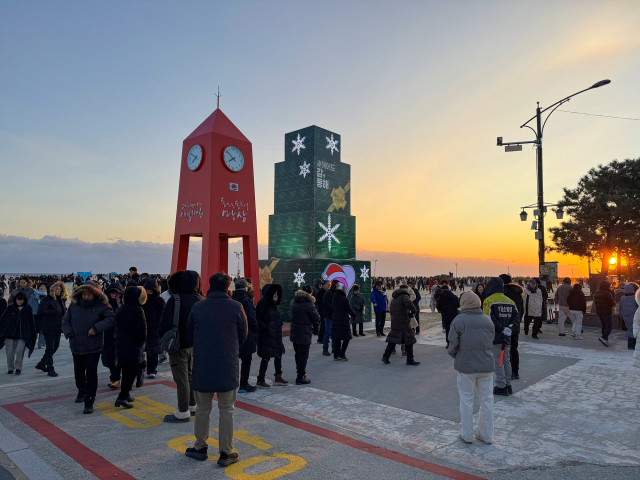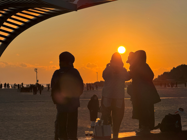 새해 첫 일출을 보려는 관광객과 시민들이 1일 아침 동해시 망상해변을 찾아 해맞이를 하고 있다.