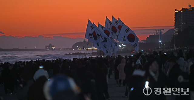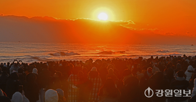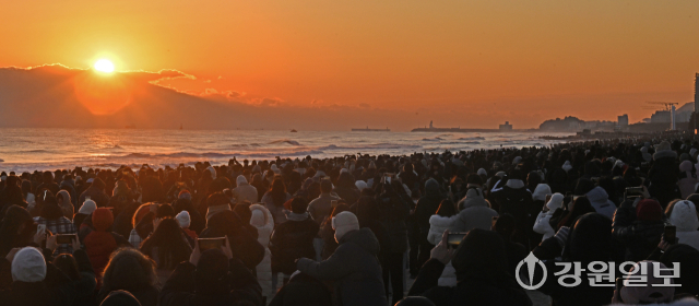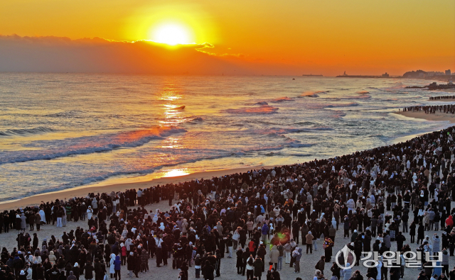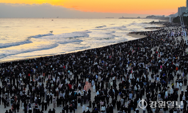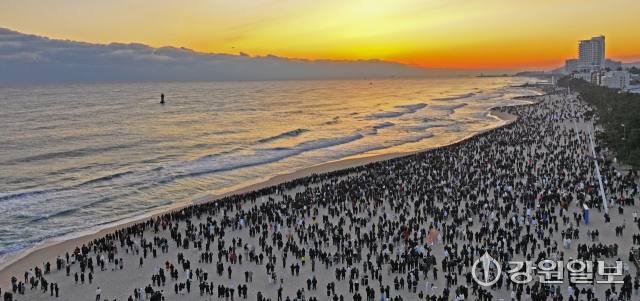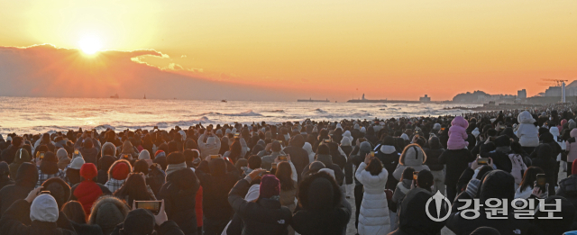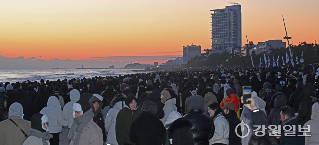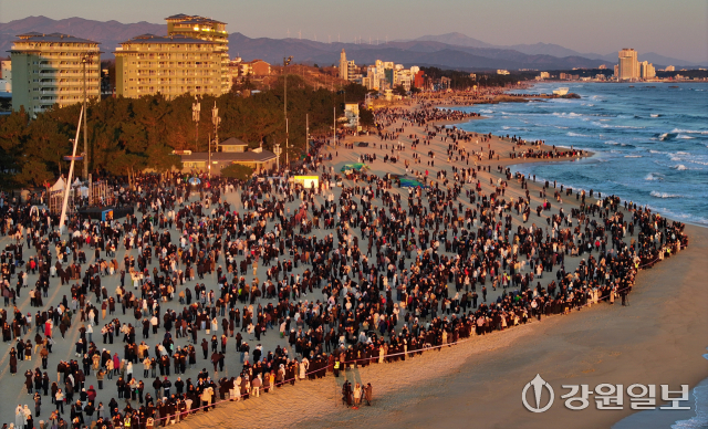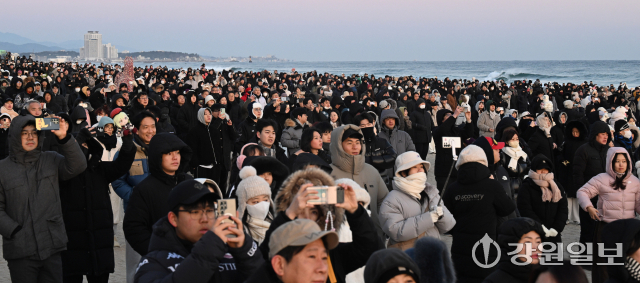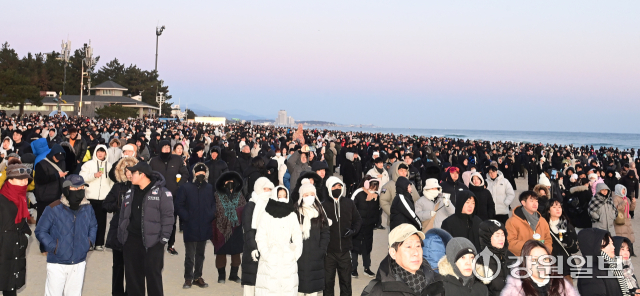 2026년 병오년(丙午年) 새해 첫날인 1일 강릉시 경포해변에서 시민과 관광객 등 백사장 가득한 인파가 몰려 새해 첫 소망을 기원했다. 강릉=권태명기자