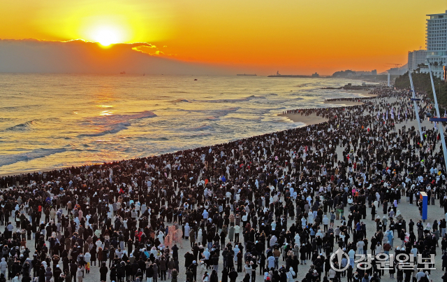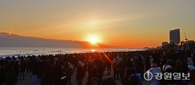 1일 새벽부터 강릉 경포해변에는 전국에서 몰려온 해맞이객들이 백사장에서 첫 해를 기다리고 있었다. 이날 아침 최저기온이 영하 10도를 밑돌며 매우 추운 날씨를 보였지만 해맞이객들의 발걸음을 멈출 순 없었다. 강릉시에 따르면 경포 13만명, 정동진 11만명, 안목 등 기타 6만명 등 전년 대비 약 19% 증가한 총 30만명의 해맞이객이 방문했다.