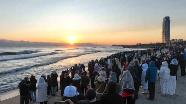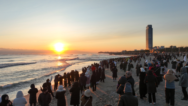 병오년(丙午年) 새해 첫 날인 1일 양양 낙산해수욕장에 동해에서 떠오르는 해를 보기 위해 해돋이 관광객들이 인산인해를 이루고 있다. 사진=양양군청 제공