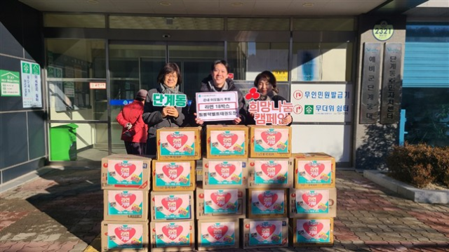 팀블랙벨트태권도장(관장:김승현) 관원 일동은 지난해 12월31일 단계동행정복지센터에서 저소득층을 위한 라면 18상자를 전달했다.