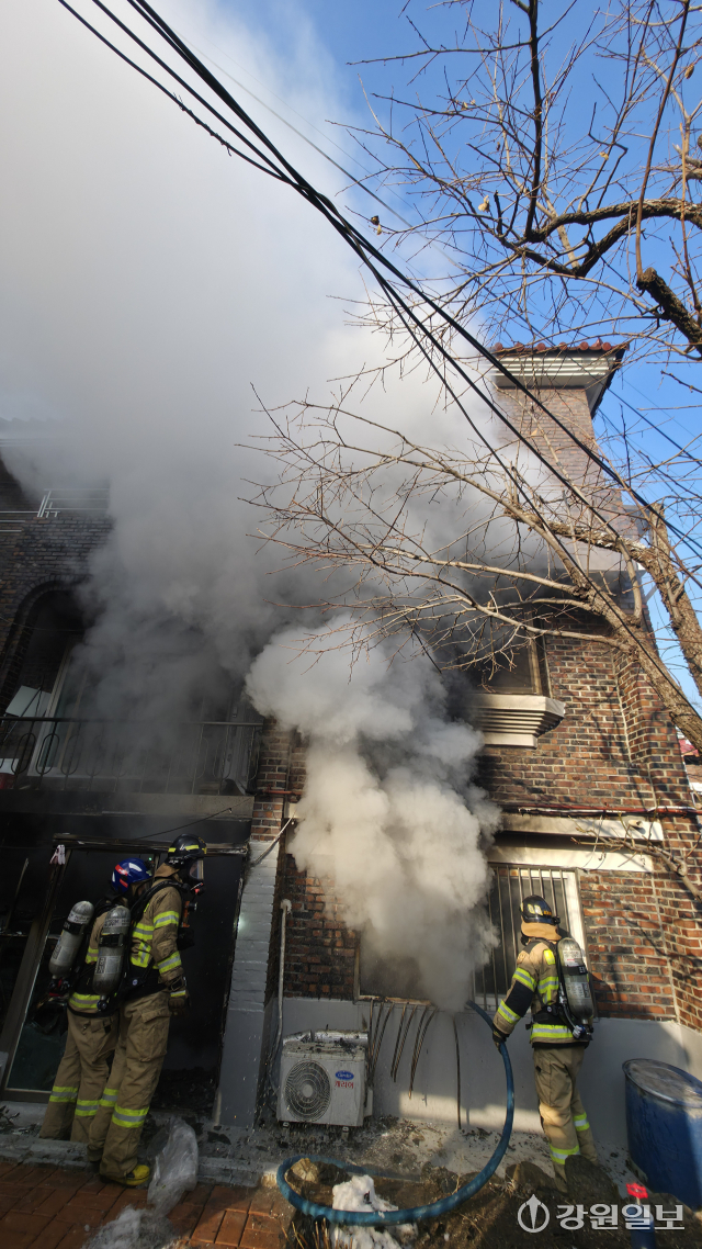 4일 오전 9시54분께 춘천시 후평동의 한 3층짜리 원룸 건물에서 불이 났다.