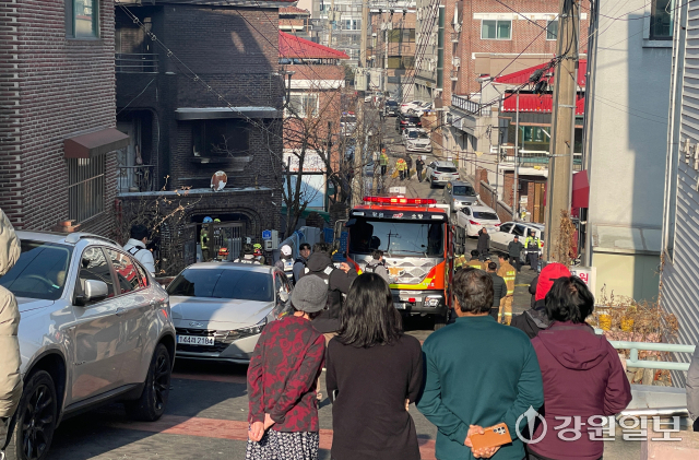 4일 오전 9시54분께 춘천시 후평동의 한 3층짜리 다세대주택에서 화재가 발생해 1시간여 만에 진화됐다. 이 불로 1층 방에 있던 A(여·50)씨가 숨지고, 또 다른 거주자 B(65)씨가 연기를 마셔 병원으로 옮겨졌다. 이외에도 건물에 있던 주민 4명이 대피했다. 경찰·소방당국은 정확한 화재 원인을 조사하고 있다.