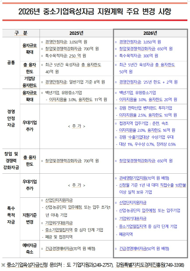 강원특별자치도는 도내 중소기업의 경영 안정을 지원하고 지역경제 활성화를 도모하기 위해 이같은 내용이 담긴 총 4,000억 원 규모의 2026년도 중소기업육성자금 운용계획을 확정했다.