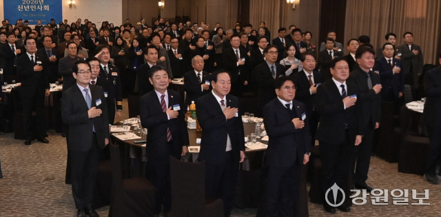 5일 오전 춘천상공회의소 주최로 춘천스카이컨벤션에서 열린 춘천시 신년 인사회에 참석한 김진태 강원특별자치도지사가 “오늘 행사를 위해 연가를 냈다”고 소개해 배경에 관심이 모아지고 있다.