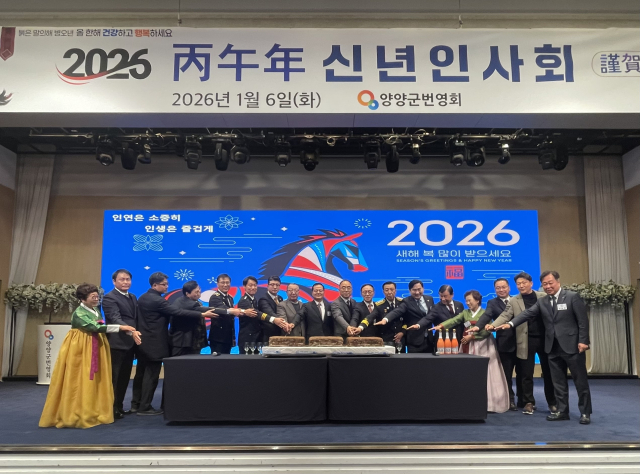 양양군번영회(회장:정준화)는 6일 양양쏠비치 그랜드볼룸에서 탁동수 양양군수권한대행과 이종석 군의장을 비롯한 지역 기관·단체장이 참석한 가운데 2026년 병오년 신년인사회를 열고 양양군의 발전을 기원했다.