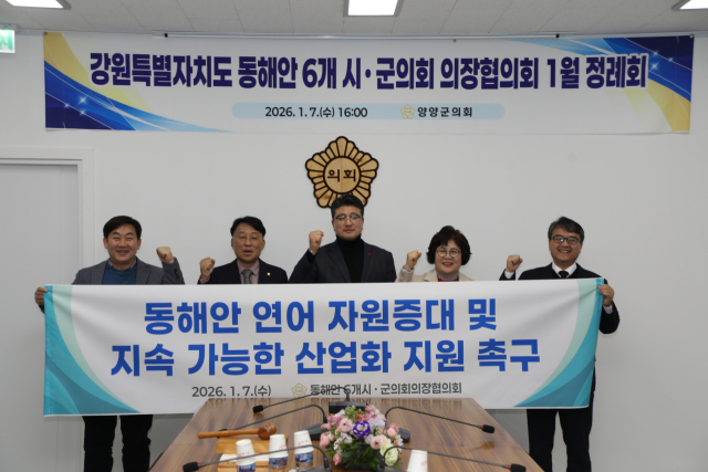 도 동해안 6개 시·군의회 의장협의회(회장:이종석 양양군의장)는 7일 양양군의회에서 올해 첫 정례회를 열고 ‘동해안 연어 자원증대 및 지속 가능한 산업화 지원 촉구 건의문’을 채택했다.