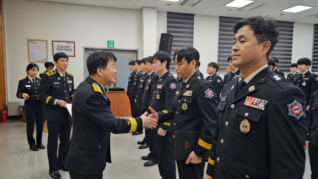 [포토뉴스]철원소방서 2026년 전반기 정기인사 신고식