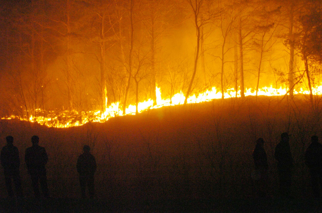 ■거센 불길 주민들 생활터전까지 삼켜=“산이 타들어가는 소리를 들었어요. 나무가 펑펑 터지는 소리와 불길이 바람처럼 번져 밤새 뜬눈으로 지켜볼 수밖에 없었죠 산이 죽은 줄 알았어요.” 강풍과 극도로 건조한 날씨 속에 불길은 능선을 넘나들며 사흘간 3,762㏊의 산림을 태웠다. 산림과 마을의 경계는 무너졌고 불길은 주민들의 생활터전까지 삼켰다. 당시 산불 대응체계는 지금과 비교할 수 없을 만큼 단순했다. 좁은 산길, 부족한 진화 장비, 체계화되지 않은 대응 시스템은 거센 불길을 막기엔 역부족이었다. 헬기 투입은 제한적이었고 초동 진화 인력과 장비는 불길을 따라가기에도 벅찼다. 산불 대응 매뉴얼은 지금처럼 세분화되지 않아 구조적 대응이 어려웠다.