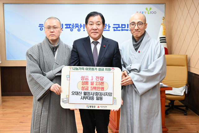 유향미 군 복지정책과장은 “매년 나눔을 실천해 주시는 월정사와 중대사자암에 깊이 감사드린다”며 “기탁해 주신 소중한 성품과 성금은 도움이 꼭 필요한 이웃들에게 정성껏 전달하겠다”고 말했다.