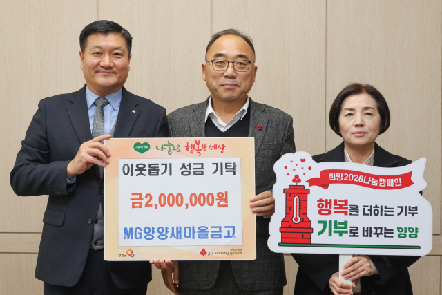 양양새마을금고(이사장:박종현)는 8일 양양군청을 찾아 탁동수 양양군수권한대행에게 이웃돕기성금 200만원을 기탁했다.