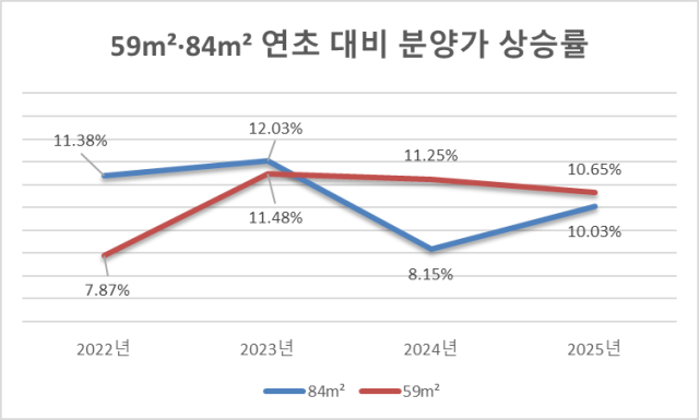 전용 59㎡ 분양가도 10.65% 상승하며 높은 상승률을 나타냈다.