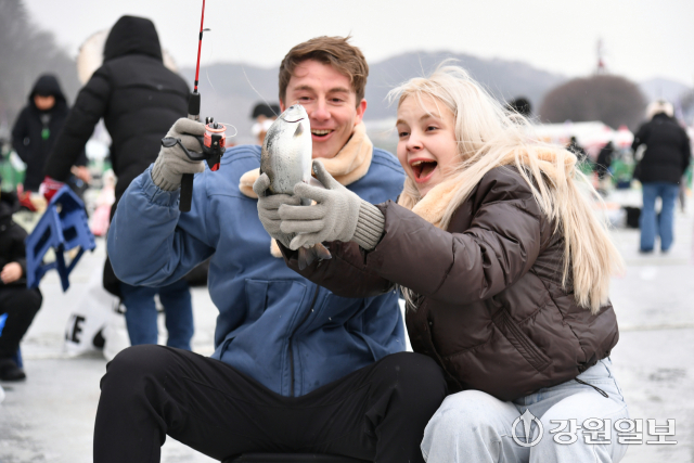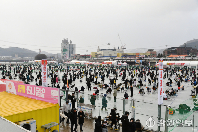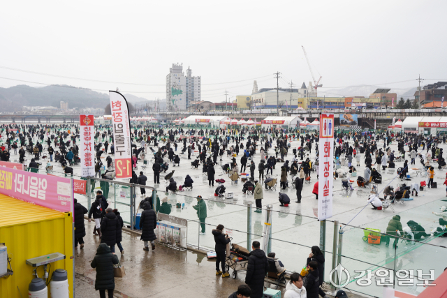 축구장 30개 면적에 달하는 얼음판 위에 최대 2만여개의 얼음구멍에는 얼음낚시를 즐기려는 국내외 관광객과 가족단위 관광객들이 일찌감치 자리를 잡고 짜릿한 손맛을 느끼며 즐거워하고 있다.