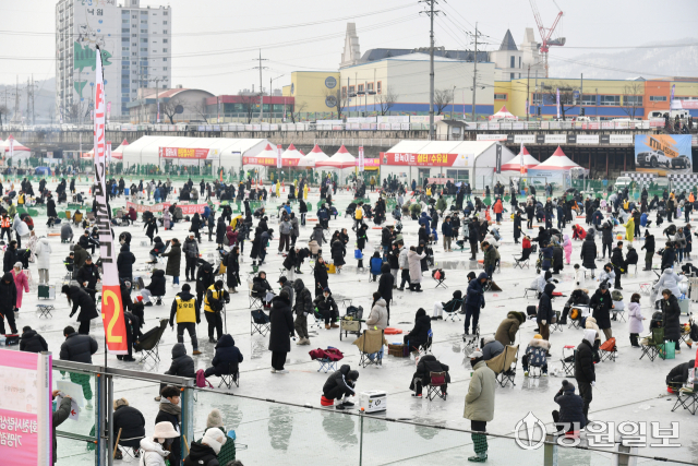 화천산천어축제가 시작된 10일 오전8시30분부터 축제장에는 얼음낚시를 즐기려는 관광객들의 발길이 이어지고 있다.