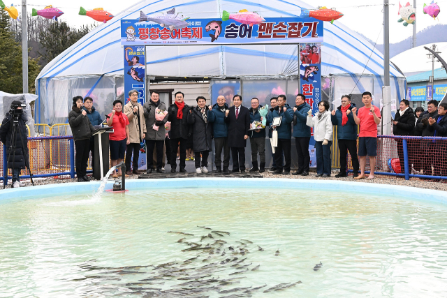개막식 후에는 맨손송어잡기 체험이 운영돼 심현정·김광성 평창군의원과 장문혁 평창송어축제위원장을 비롯한 30여 명의 참가자가 반소매·반바지 차림으로 얼음장 물에 들어가 송어를 잡으며 현장 분위기를 달궜다.