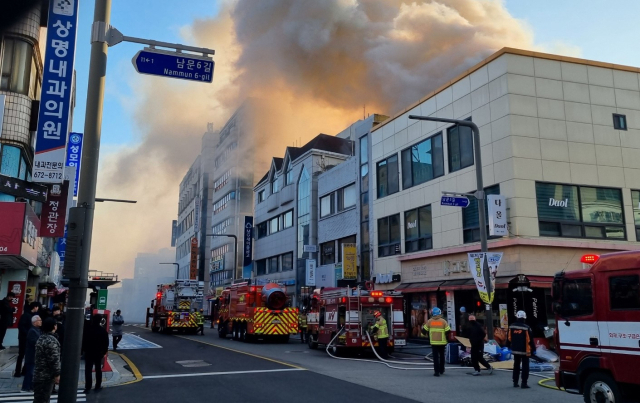 지난 9일 오전 8시 54분께 양양시내 양양전통시장 인근 상가 건물에서 쓰레기 소각으로 추정되는 화재가 발생해 양양소방서 등 소방당국에서 진압차량 20여대를 비롯해 소방대원을 출동해 화재를 진압하고 있다. 양양소방서를 비롯한 관련 기관들은 12일 오전 10시30분 합동감식을 진행할 예정이다. 양양=김보경기자