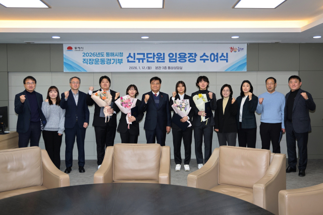 동해시 직장운동경기부 유도팀 신규선수 임용장 수여식이 12일 동해시청 통상상담실에서 신규 선수 4명과 심규언 시장 등이 참석한 가운데 열렸다.