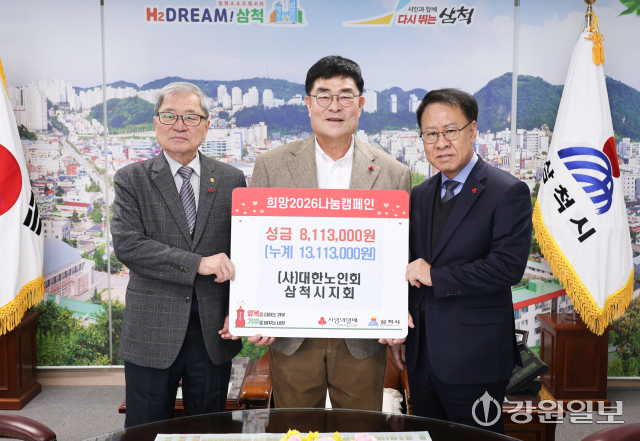 (사)대한노인회 삼척시지회(지회장:박재옥)는 12일 이웃돕기 성금 811만3,000원을 삼척시에 기탁했다.