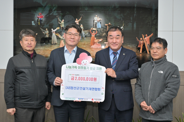 (사)정선군건설기계연합회(회장:최동순)가 12일 정선군청 부군수 집무실에서 지역 내 어려운 이웃들을 위해 써달라며 200만원의 희망나눔기탁금을 곽일규 정선부군수에게 전달했다.