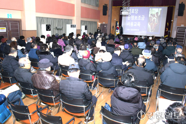 이날 교육에서는 최현희 시 경로장애인 과장이 올해 경로당운영 지원시책에 대해 설명했고, 이종학 노인회 사무국장은 경로당운영 사무관리 설명을 진행했다. 지난해 강릉시 노인인구는 65세이상이 56,933명(남24,840 · 여32,093)으로 노인 회원수는 17,877명(남7,350 · 여10,527)이다. 경로당 332개소에서 각종 프로그램이 운영되고 있다.
