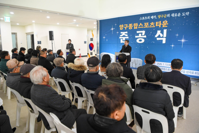 양구종합스포츠타운 준공식이 13일 양구읍 성곡로 81에서 서흥원 양구군수, 정창수 양구군의장 및 군의원, 김왕규 도의원, 권혁범 양구소방서장을 비롯한 지역 기관·단체장 등이 참석한 가운데 열렸다.