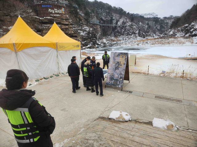 이번 훈련은 겨울철 관광객 증가에 따라 안전사고 발생 가능성이 높은 얼음트레킹 코스에서 소방차량의 원활한 진입 여건을 사전에 점검하고 긴급상황 발생시 신속한 대응 체계를 구축하기 위해 마련됐다. 이날 소방대원들은 트레킹 코스 내 소방차량 진입이 가능한 12개소를 대상으로 사전 진입로 위치를 파악하고 현장 대응 동선 확인 등을 중점적으로 실시했다. 특히 실제 사고발생을 가정해 우회 진입로를 활용한 접근 훈련을 병행해 빙판 협소구간 등 겨울철 특수환경에서도 신속하고 안전한 구조·구급 활동이 이뤄질 수 있도록 대응 역량을 강화했다. 최임수 서장은 "한탄강 얼음트레킹 코스는 겨울철 많은 관광객이 찾은 명소인 만큼 철저한 사전 점검과 훈련을 통해 군민 및 관광객 안전을 확보하도록 최선을 다하겠다"고 말했다.