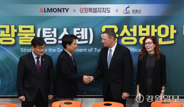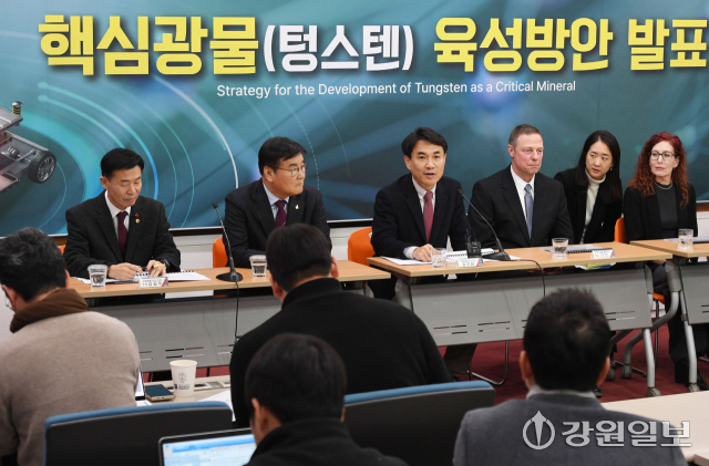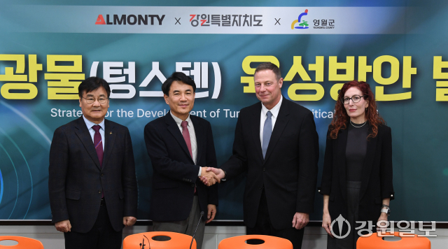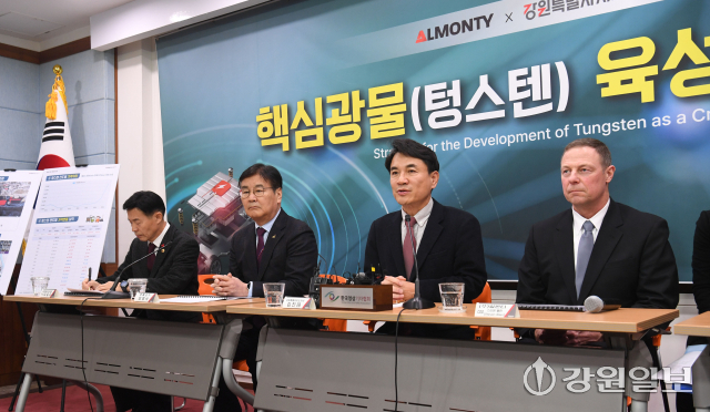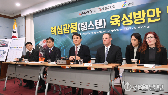 강원특별자치도는 15일 도청 브리핑실에서 김진태 도지사, 최명서 영월군수, 김길수 도의원, 스티븐 알렌 (주)알몬티 인더스트리 최고운영책임자 등이 참석한 가운데 기자회견을 열고 영월 상동 광산을 중심으로 한 핵심광물(텅스텐) 육성방안을 발표했다.