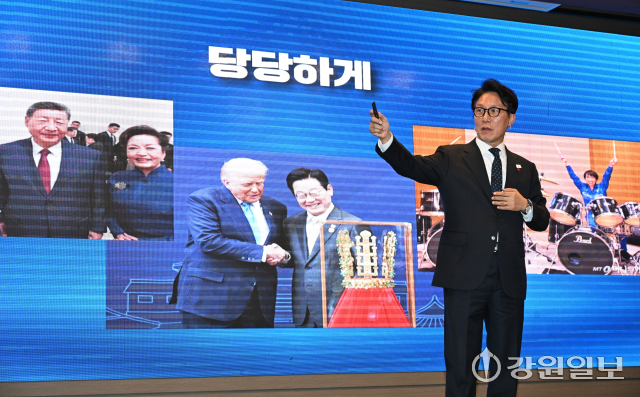 정부와 대통령도 강원의 미래를 함께 일구겠다고 밝힌 그는 "그 과정에서 긴밀하게 소통하겠다"며 "이재명 국민주권 정부가 흔들림 없이 가도록 늘 응원하고, 박수치고, 격려해주길 바란다"고 말했다.