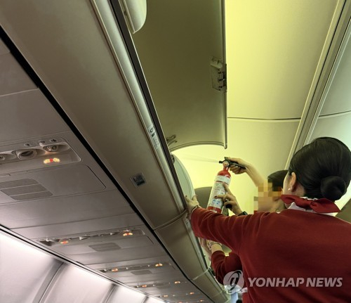 당시 상황을 목격한 승객의 신고를 받고 승무원들이 즉시 진화에 나서 연기는 곧바로 진압됐다.