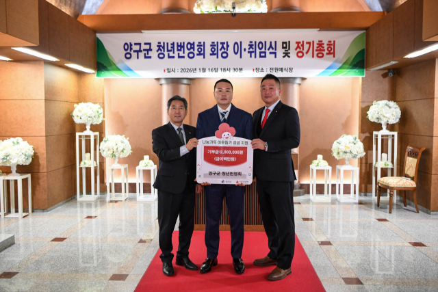 양구군 청년번영회(회장:이창순)는 지난 16일 이웃돕기 성금 200만원을 서흥원 양구군수에게 전달했다.
