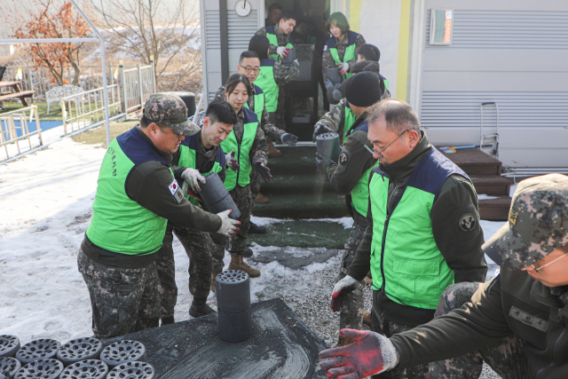 【철원】육군5포병여단 승포간부봉사단이 지난 17일 서면 내 취약계층을 위해 연탄 1,000장을 전달하는 봉사활동을 펼쳤다. 이번 봉사활동에는 5포병여단 예하 선진포병단 간부 20여명과 민간 자원봉사단체인 '한둘레 사랑의 연탄은행' 회원이 자발적으로 참여해 총 1,000장의 연탄을 전달했다. 승포간부봉사단은 지난해 말부터 현재까지 총 1,800장의 연탄을 지역 취약계층에 전달했다.