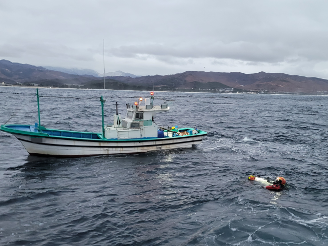 이어 현장에 도착한 묵호파출소 해상순찰팀과 P-65정은 안전관리를 실시했고, 동해해양특수구조대 잠수사 2명이 입수해 스크루에 감겨있는 로프 40㎏을 제거했다.