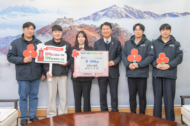 강원 고성청년회의소(회장:신유림)는 19일 고성군청 군수집무실에서 회장단 및 감사 이·취임식을 통해 들어온 쌀 300㎏을 사랑의 성품으로 함명준 군수에게 기탁했다.