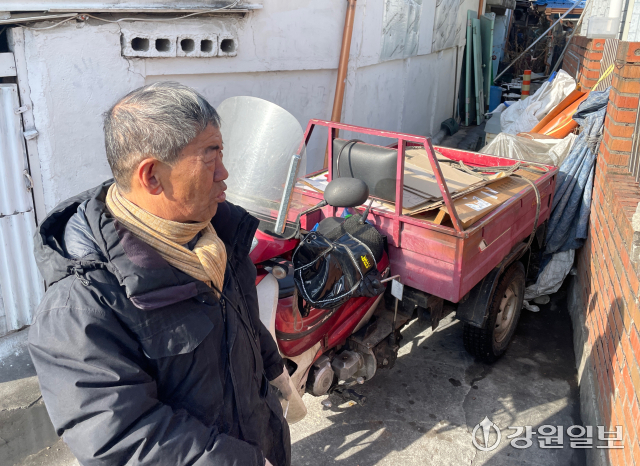 19일 찾은 춘천 우두동의 한 주택가. 한달 70만원 안팎의 기초생활급여로 생계를 이어가는 신모(69)씨는 “겨울철에는 연탄값만 한달에 30만원, 방값 20만원으로 고정 지출이 커 먹고살기 위해 폐지를 줍고 있다”고 털어놨다. 그는 20일부터 시작될 맹추위에 대비, 이날 폐지 6㎏을 미리 주워와 차곡차곡 정리했다.