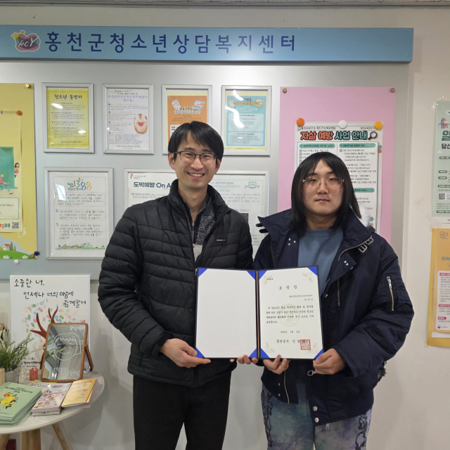 【홍천】 홍천군학교밖청소년지원센터는 학교 밖 청소년 1명과 유공자 2명에게 19일 군수 표창장을 전달했다.