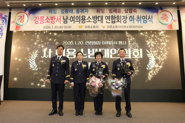 강릉소방서(서장:김진문)는 20일 강릉 세인트컨벤션에서 의용소방대 남·여 연합회장 이·취임식을 개최했다.