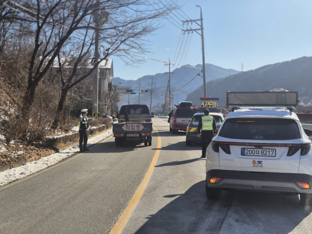 인제경찰서(서장:조남형)는 21일 인제읍 덕산리에서 대형교통사고 발생 시 2차 교통사고 예방 및 긴급 대응 능력 강화를 위해 군청·소방 등 유관기관 합동훈련을 실시했다.