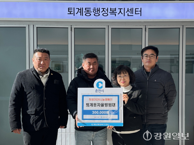 춘천시 퇴계동 자율방범대(대장:김만복)는 21일 퇴계동행정복지센터(동장:이명숙)를 찾아 희망2026나눔캠페인 성금 30만원을 전달했다.