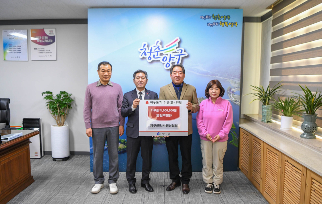 양구군민박펜션협회(회장:문성학)는 22일 양구군청을 방문해 이웃돕기 성금 100만원을 서흥원 양구군수에게 전달했다.