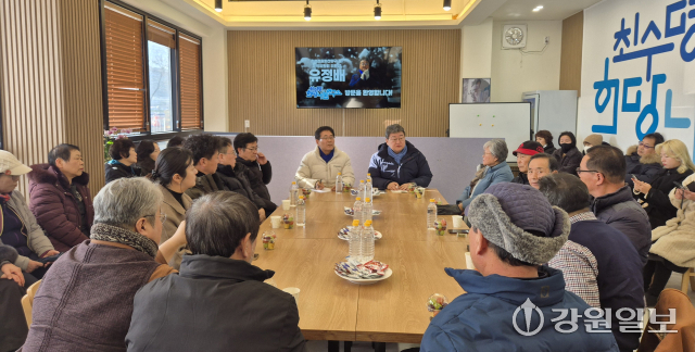【화천】 최수명의 희망나눔연구소가 지난 21일 더불어민주당 춘천·철원·화천·양구(을) 유정배 지역위원장을 초청, 지역 현안 간담회를 열어 폭넓은 의견을 교환했다.