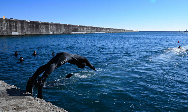첫 날 이들은 3㎜ 두께의 얇은 슈트만을 착용한 채 동해군항 1부두 해안에서 맨몸수영을 실시하며 혹한기 동해안의 냉해를 극복하기 위한 훈련을 진행했다.