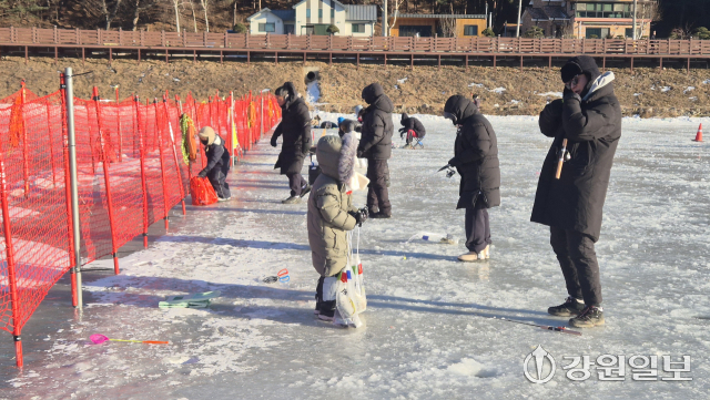 22일 평일임에도 축제장에는 가족 단위 방문객과 연인, 단체 관광객, 외국인 관광객 등이 고르게 찾으며 송어 낚시를 즐겼다. 이날 새벽 기온이 영하 18도까지 내려가며 얼음낚시터의 얼음판 두께는 안전기준을 크게 웃돌았다.