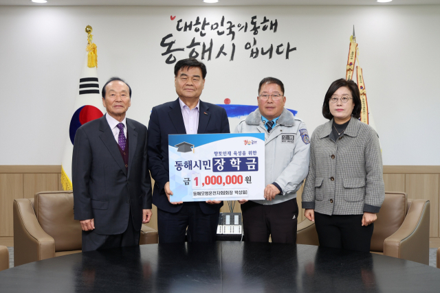 동해모범운전자회(회장:박성일)는 23일 동해시를 방문 향토인재 육성을 위한 동해시민 장학금 100만원을 기탁했다.