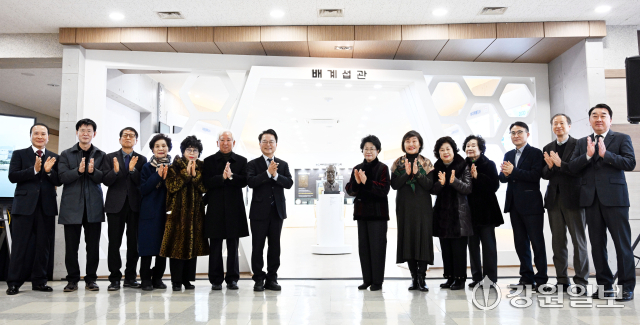 춘천바이오산업진흥원 '배계섭관 유품 기증식'이 23일 원내에서 고(故) 배계섭 전 춘천시장의 부인 이매자 여사와 신용철 전 춘천부시장 부인 윤강규 여사, 육동한 시장, 김창혁 원장을 비롯한 내빈들이 참석한 가운데 열렸다.