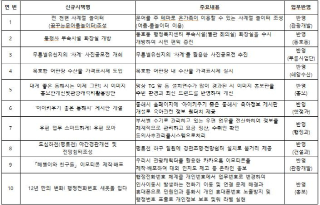 【동해】동해시가 직원들의 창의적인 아이디어를 발굴해 시정에 반영하는 ‘정책아이디어 페스타’를 열고, 오는 2월 중 시민 온라인 투표를 실시한다.