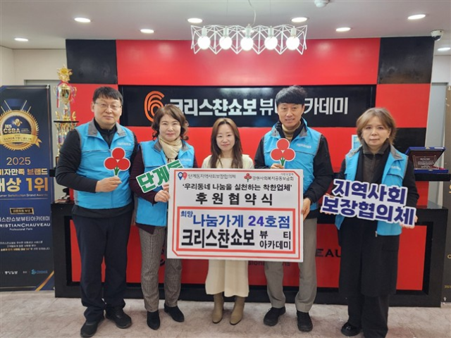 원주시 단계동지역사회보장협의체(민간위원장:김주백)는 지난 22일 크리스챤쇼보 뷰티아카데미(원장:김지난)에 방문해 단계동 희망나눔가게 제24호점 후원 협약을 체결했다. 정기 후원금은 사회복지공동모금회를 통해 취약계층 안부 확인을 위한 반찬, 생필품 지원 등에 쓰인다.