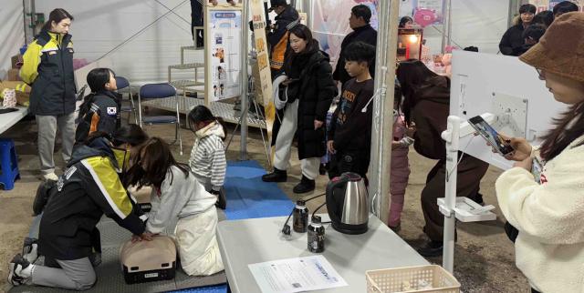 홍천소방서(서장:이강우)는 의용소방대 연합회와 함께 지난 9일부터 25일까지 열린 제14회 홍천강 꽁꽁축제장에서 119안전체험장을 운영했다. 체험장에서는 방화복 착용 체험을 비롯해 연기 소화기 체험, 오제미를 활용한 불 끄기 체험, 심폐소생술(CPR) 및 자동심장충격기(AED) 사용법 교육, 완강기 체험 등 실생활에 필요한 안전교육이 진행됐고, 하루 평균 400여명이 방문했다.