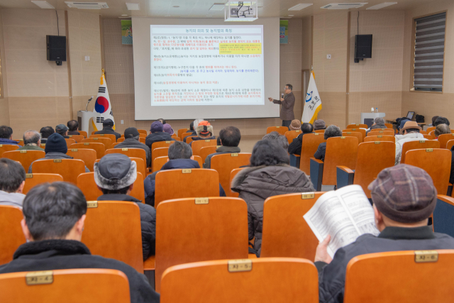 고성군 새해 농업인 실용교육이 26일 고성군농업기술센터 농업인교육관에서 함명준 군수와 김일용 군의원, 농업인 50여명 등이 참석한 가운데 열렸다. 이날 교육은 농지법을 주제로 진행됐다.