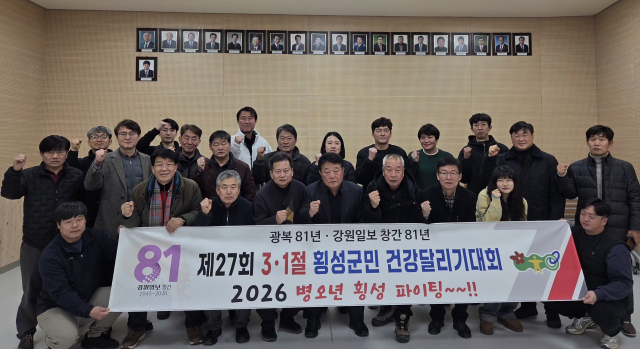 ◇횡성군체육회 박명서 회장과 9개 읍·면 체육회장 등 임원진들은 27일 군체육회관에서 오는 3월1일 열리는 제107주년 3·1절기념 제27회 횡성군민건강달리기대회 참가와 지역스포츠 활성화를 다짐하며 파이팅을 외쳤다.