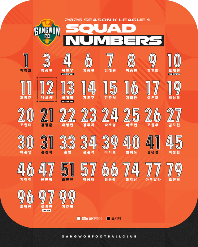 강원FC가 2026시즌 등번호를 공개했다.